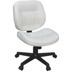 The Cirrus Management Swivel Chair features a white vinyl seat and back. Bunched seam stitching adds style and comfort to this attractive swivel chair. Features seat height adjustment and center tilt with tilt tension and lock. Features
