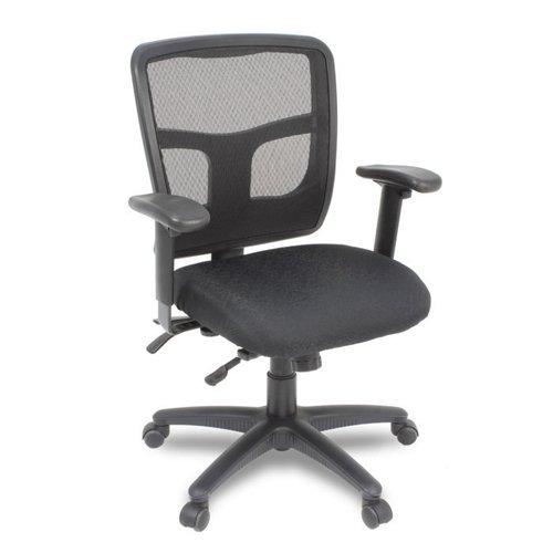 The Kiera collection mid back mesh task chair is constructed with a durable nylon base and supportive mesh back. Cushions meet CA 117 fire code standards and are upholstered in attractive Black fabric. Chair features instant lift adjustable seat height a mid-pivot knee tilt mechanism adjustable back height and height and width adjustable padded arms. Features