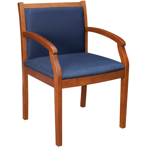 Constructed with a wood frame and upholstered seat and back and has a hand rubbed finish. This great guest chair features a four leg design that offer simple and easy assembly.