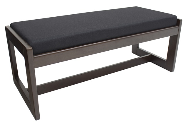 Double seat bench includes solid wood veneer frame with Mocha Walnut finish. Thick waterfall cushions are wrapped in a Black Zenith designer fabric that is sure to accent any library reception or conference setting. Features
