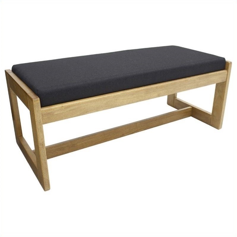 | Regency - Guest Chairs - BBNCH2148MOBK - Designed to furnish professional office buildings, the regency double seat bench can accommodate two adults. The frame of this contemporary style bench is made from solid wood veneers and covered with a medium oak finish. The blue fabric upholstery has a nice texture that is designed to handle commercial use for many years.Finish: medium oak and blackMade of solid wood veneer and fabricWooden baseSpecifications:Overall Dimensions: 19 H x 48 W x 21 D