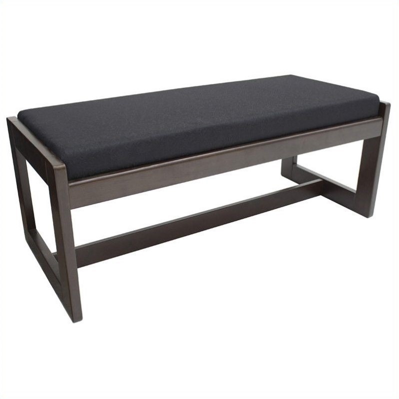 | Regency - Guest Chairs - BBNCH2148MWBK - Designed to furnish professional office buildings, the regency double seat bench can accommodate two adults. The frame of this contemporary style bench is made from solid wood veneers and covered with a mocha walnut finish. The blue fabric upholstery has a nice texture that is designed to handle commercial use for many years.Finish: mocha walnut and blackMade of solid wood veneer and fabricWooden baseSpecifications:Overall Dimensions: 19 H x 48 W x 21 D