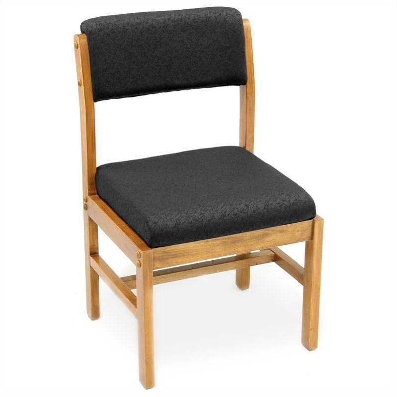 | Regency - Guest Chairs - B61775MOBK - Durable and great looking, the Leg Base Side Chair is textbook perfect for office settings, reception areas and libraries. Thick waterfall cushions draped in a Black Zenith designer fabric are the perfect melange for both ultimate comfort and fashionable style. If you're seeking to impress them all, this chair is the one.Finish: medium oak and blackMade of veneer and fabricWaterfall cushionsWooden baseSpecifications:Overall Dimensions: 34 H x 21 W x 19 D