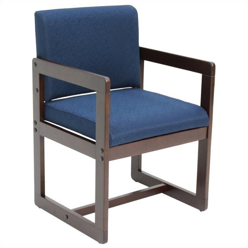 | Regency - Guest Chairs - B61715MWBE - The Belcino Sled base with arms side chair by Regency Seating includes a solid, wood veneer frame. The cushions are wrapped in a designer fabric that is sure to accent any seating area. Finish: mocha walnut and blue; Made of veneer and fabric; Waterfall cushions; Wooden base. Specifications:Overall Dimensions: 34 H x 23 W x 20 D.