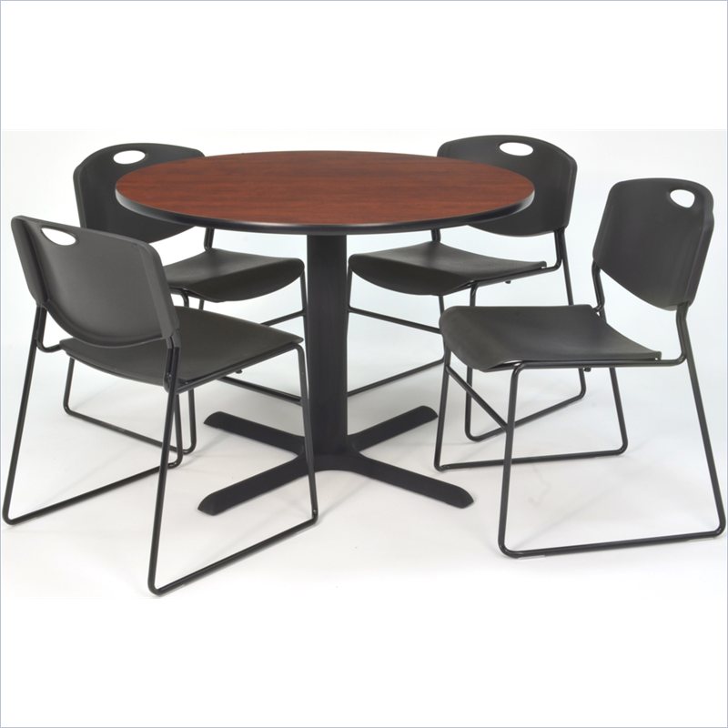 | Regency Cain 42 Cherry Breakroom Table with Zeng Chairs in Black |
