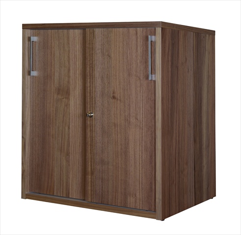 Regency's Harmony Stackable Storage Cabinet is constructed of genuine American Walnut wood veneer with a matching veneer edge. It features sliding doors with a core interchangeable lock and two shelves that adjust in 1 in. increments. LockDowel technology allows this unit to be built without the use of tools cutting down on assembly time by up to 80%. Features