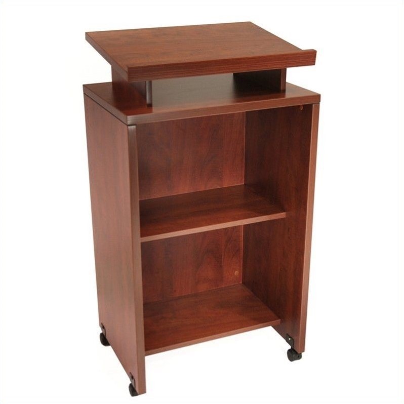 | Regency - Lectern - LLC44CH - This table top lectern can be useful for company meetings or presentations. It displays a clean-cut design with straight lines, minimal details and a cherry finish. The lectern is crafted from thermal fused melamine laminate to ensure durability. The matching PVC edges provided extra protection. Simple yet elegant, this lectern is sure to be a fine addition to your office space. Lectern in cherry; Made of thermal fused melamine laminate and pvc . Specifications: Overall Dimensions: 44 H x 24 W x 18 D .