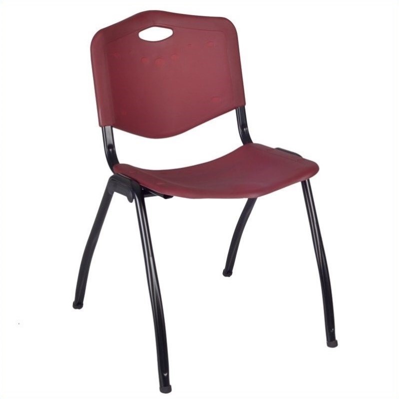 | Regency - Stacking Chairs - 4700BY4PK - A fabulous addition to your cafeteria, break room or training room, this set of 4 stackable chairs is a must-have. The chairs feature a plastic textured seat and a sturdy back for a comfortable seating experience. The hand hold on the back allows easy handling while moving the chairs from one place to another. A sturdy metal frame ensures years of dependable use. With their stackable design, these chairs can be conveniently stored and require minimal space.Stack chair in burgundyMade of plastic and metalIntegrated handle in backrestSturdy frameEasily stack up to 12 chairsSpecifications:Overall Dimensions: 36 H x 20 W x 23 D