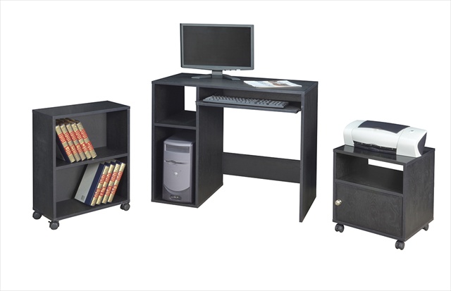 The Office In a Box from Regency has 3 units in one! The desk features a 35 x 18. 5 in. work surface keyboard tray storage shelf and CPU box. Also included is the mobile bookshelf and mobile printer cart. Features