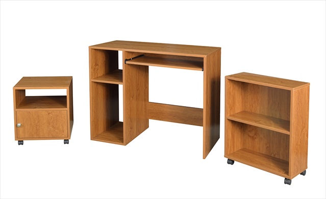 The Office In a Box from Regency has 3 units in one! The desk features a 35 in. x 18. 5 in. work surface keyboard tray storage shelf and CPU box. Also included is the mobile bookshelf and mobile printer cart. Features