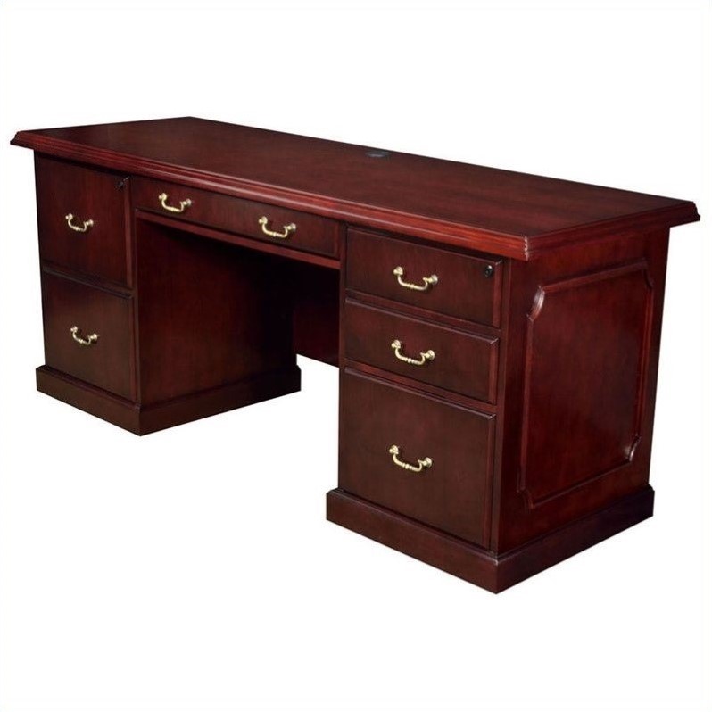 | Regency - Executive Desks - TVEC7224MH - Made in the traditional style, the regency mahogany 72 inch veneer credenza makes a great addition to a home office or library. This desk unit has metallic hardware that is covered in a touch of brass for traditional style. Two large file drawers and seveFinish: mahoganyMade of veneer2 file drawersOrnate edge detailsBrass colored handlesLockable box and file drawersSpecifications:Overall Dimensions: 29 H x 72 W x 36 D