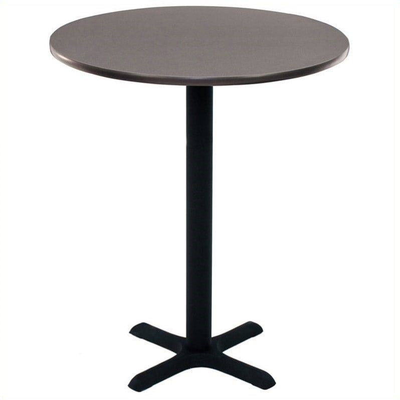 | Regency - Lunchroom Tables - TCB36RNDGY - 30round Table is constructed of engineered wood wrapped in thermal fused melamine laminate with a black PVC edge. The metal Cain base has a black powder coat finish and is equipped with adjustable leveling glides. This Cafe high (42) table is great for any home, pub or restaurant.Finish: grayMade of engineered wood wrapped in thermal fused melamine laminate with a black PVC edgeMetal cain X style baseAdjustable leveling glidesSpecifications:30 inch Table Dimension: 42 H x 30 W x 30 D36 inch Table Dimension: 42 H x 36 W x 36 D