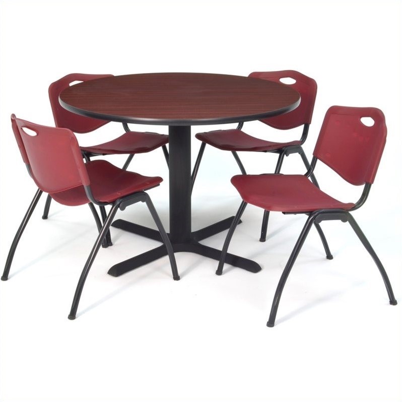 | Regency Round Lunch Table and 4 Burgundy M Stack Chairs in Mahogany |