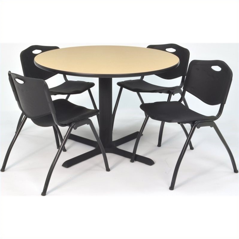 | Regency Round Lunchroom Table and 4 Black M Stack Chairs in Beige |