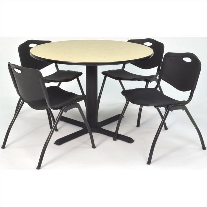 | Regency Round Lunchroom Table and 4 Black M Stack Chairs in Maple |
