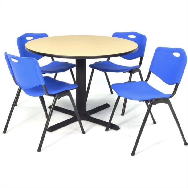| Regency Round Lunchroom Table and 4 Blue M Stack Chairs in Beige |