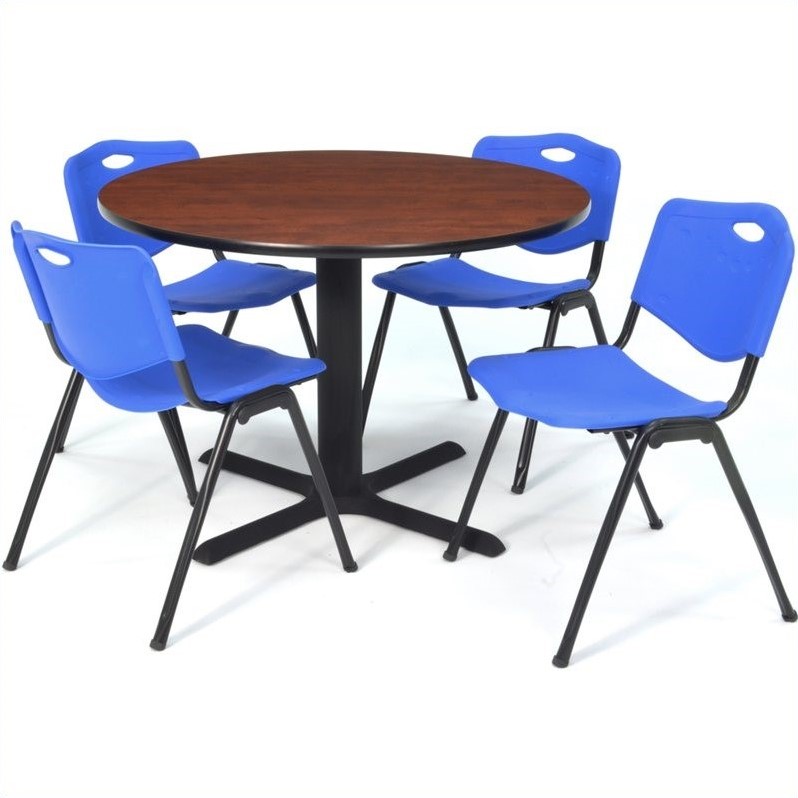 | Regency Round Lunchroom Table and 4 Blue M Stack Chairs in Cherry |