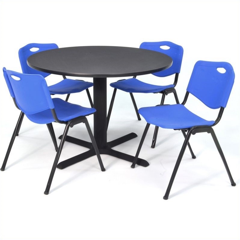 | Regency Round Lunchroom Table and 4 Blue M Stack Chairs in Grey |