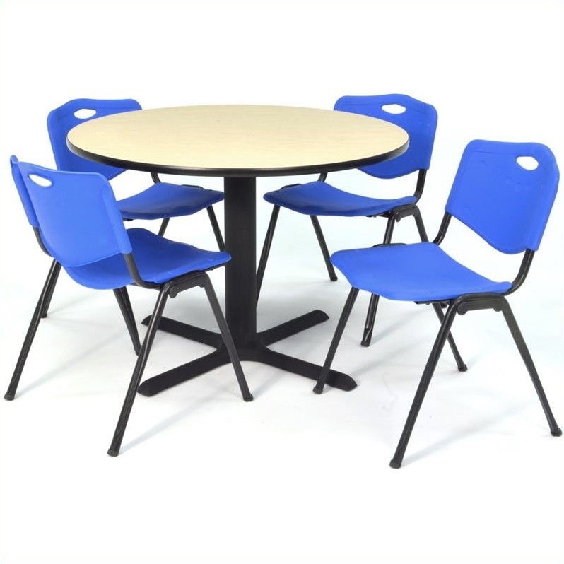 | Regency Round Lunchroom Table and 4 Blue M Stack Chairs in Maple |