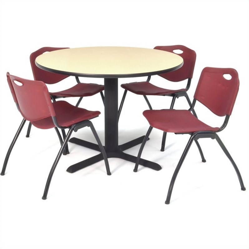| Regency Round Lunchroom Table and 4 Burgundy M Stack Chairs in Beige |
