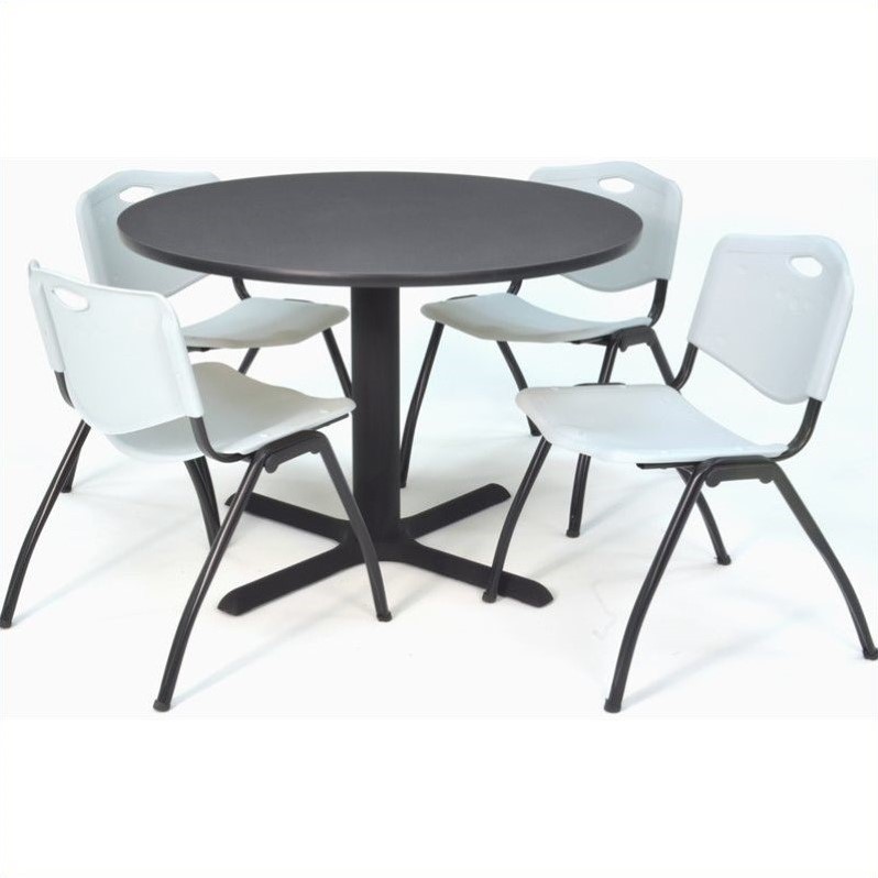 | Regency Round Lunchroom Table and 4 Grey M Stack Chairs in Grey |