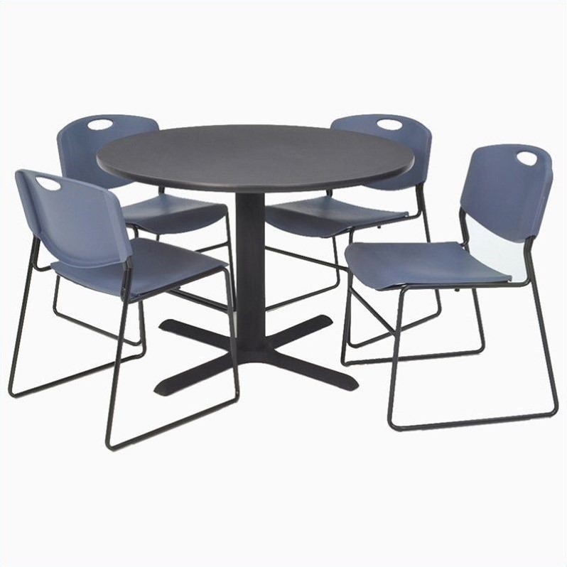 | Regency Round Table with 4 Zeng Stack Chairs in Grey and Blue-42 inch |
