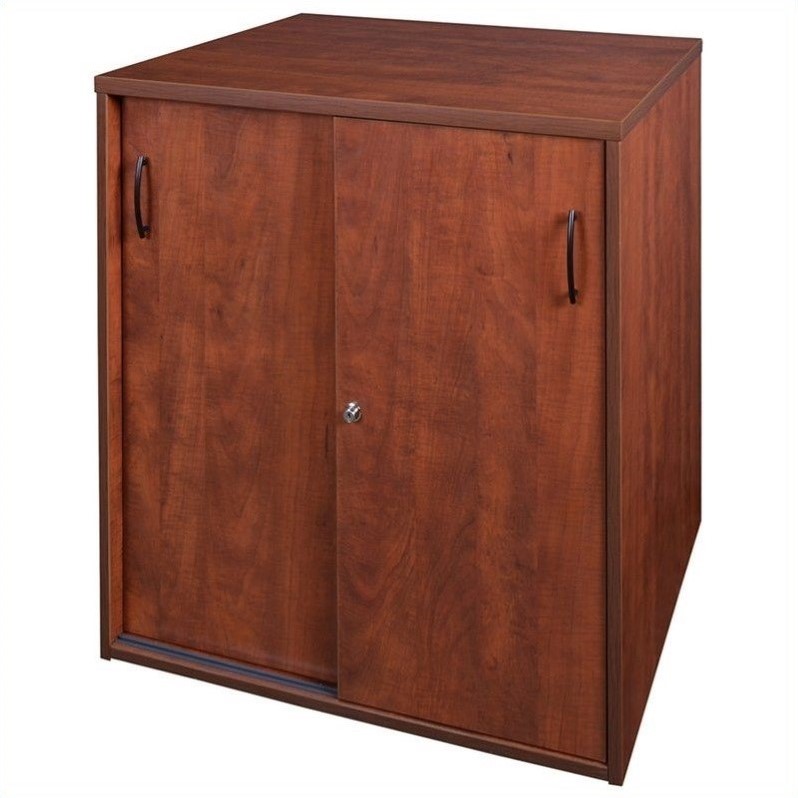 | Regency - Storage Cabinets - SSC3035SLDCH - Features two adjustable shelves. Shelves adjust in 1” increments. Sliding doors feature locking mechanism. Used on Lateral File or by itself. This cabinet gives you storage and style all in one. Finish: cherry; 2 sliding doors; 2 adjustable shelves; Locking doors; PVC edge. Specifications:Overall Dimensions: 35 H x 30 W x 24 D.