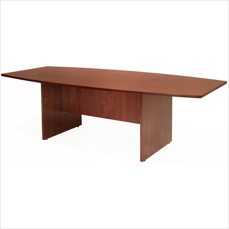 | Regency - Conference Tables - SCTBS7135CH - Meet in style with a modern boat-shaped Sandia table that's sure to impress. Its boat shape creates more room across the center where its needed most. The all-new chamfered edges give Sandia tables the look of a thin, lightweight top without sacrificing the sturdiness and functionality of a thicker table top. Adjustable glides on the bottom of the base keep the tabletop level and are easy to adjust. Regency's Sandia collection gives any office a simple and assertive presence. Timeless meets contemporary with rich wood laminate finishes and clean edge lines. The Sandia Collection is simple and easy to build using Lock Dowel technology. This advancment means no tools are necessary. Pieces are simply snapped together to form strong and durable joints, which cuts assembly time and labor cost by as much as 80%. Sandia casegoods are backed by a ten-year limited manufacturer's warranty. Finish: CherryMaterial: LaminateStylish boat shape provides a larger work area across the centerSeats 4 to 8 peopleAll-new chamfered edge gives the look of a thin tabletop without sacrificing the sturdiness of a thicker topNo-tools Lock Dowel assemply- pieces simply snap together to form strong and durable jointsAttractive Cherry laminate is scratch, stain and burn resistantBacked by a 10-year limited manufacturer's warrantySpecifications:Overall Product Dimensions: 29 H x 71 W x 35 DProduct Weight: 102 lbs
