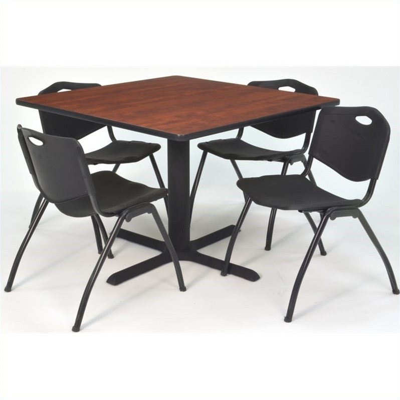 | Regency Square Lunchroom Table and 4 Black M Stack Chairs in Cherry |