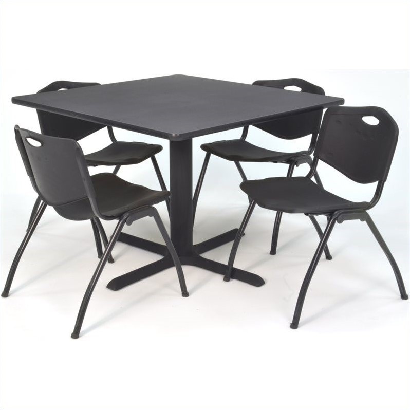 | Regency Square Lunchroom Table and 4 Black M Stack Chairs in Grey |