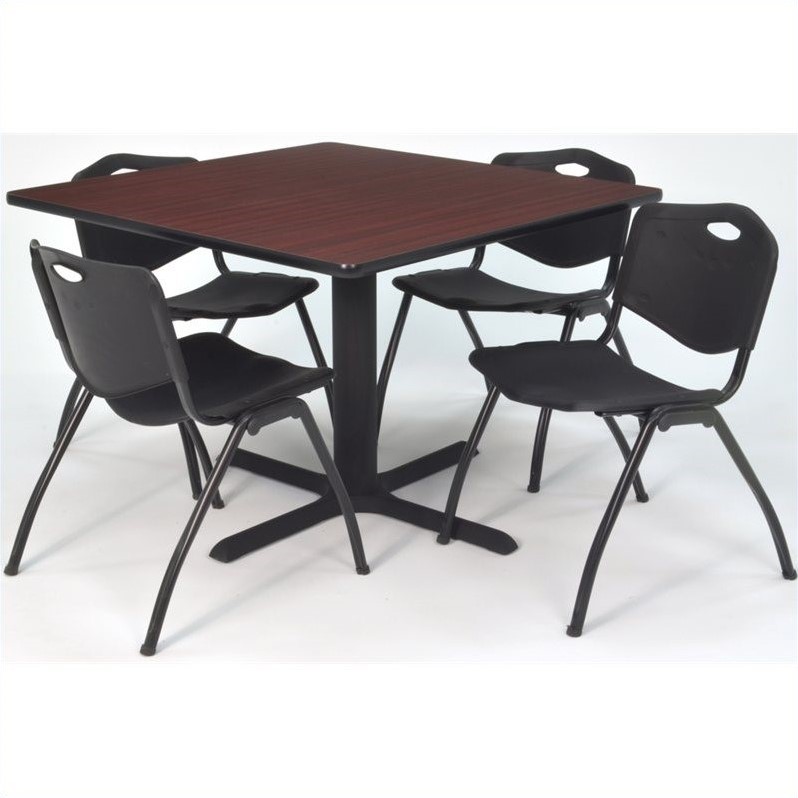 | Regency Square Lunchroom Table and 4 Black M Stack Chairs in Mahogany |