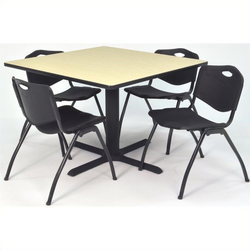 | Regency Square Lunchroom Table and 4 Black M Stack Chairs in Maple |