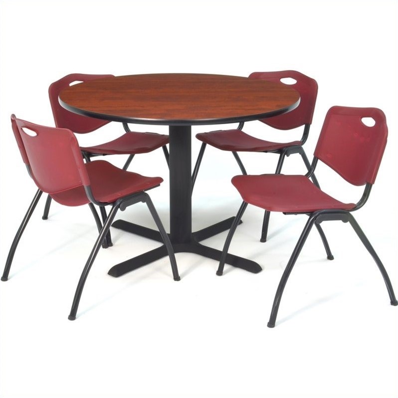 | Regency Square Lunchroom Table and 4 Burgundy M Stack Chairs in Cherry |