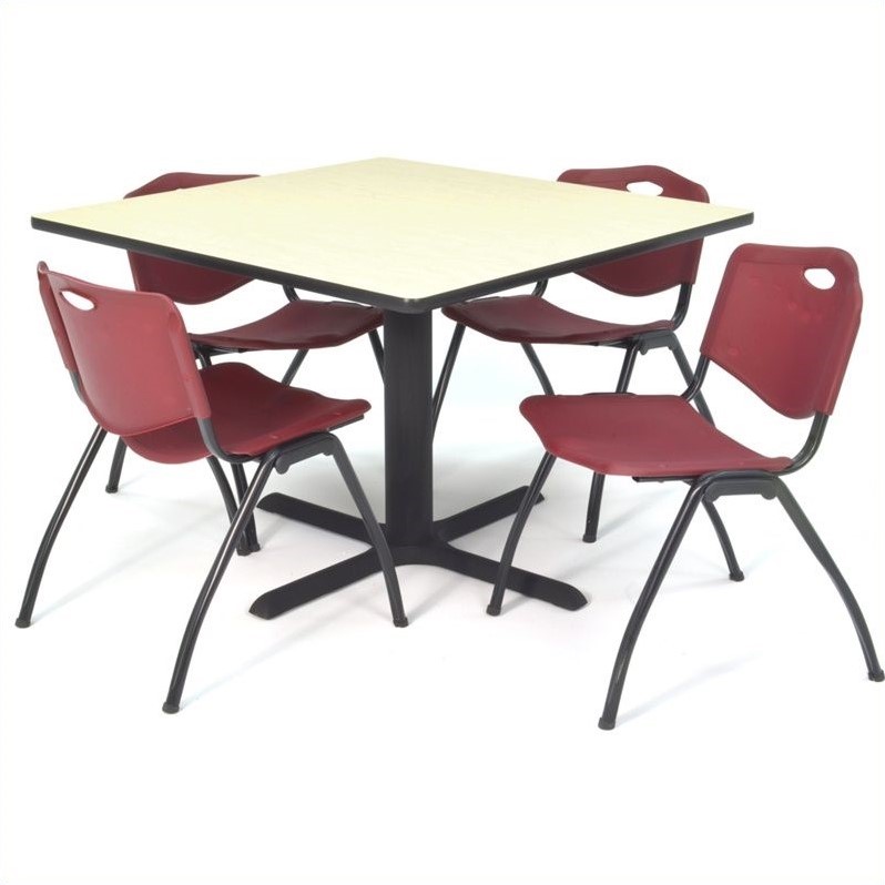 | Regency Square Lunchroom Table and 4 Burgundy M Stack Chairs in Maple |