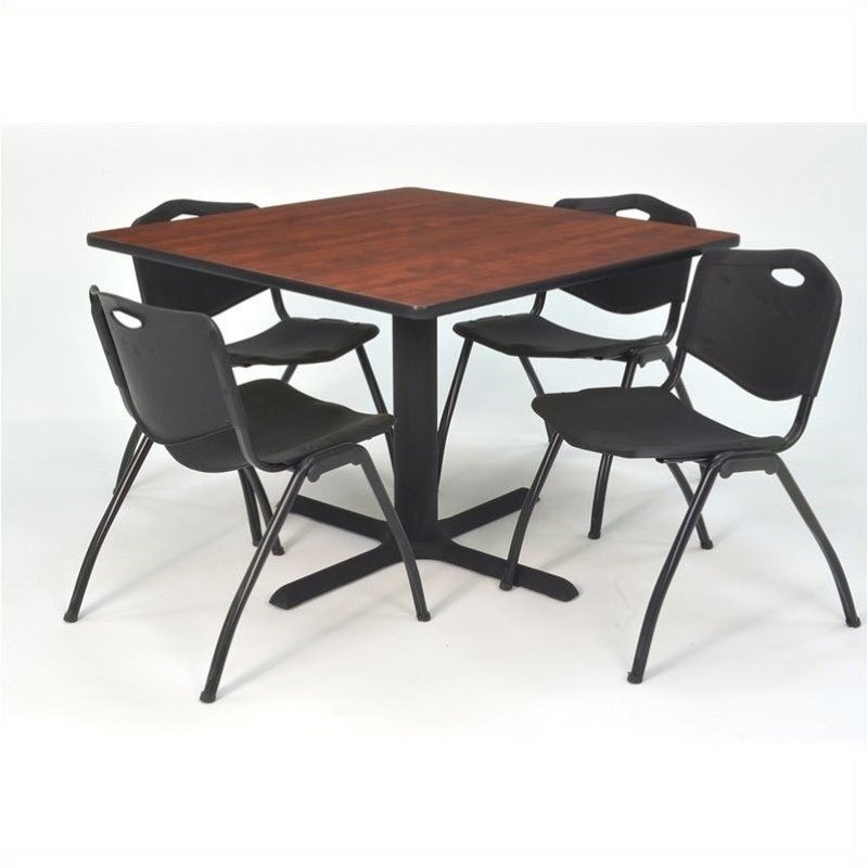 | Regency Square Table with 4 M Stack Chairs in Cherry and Black |