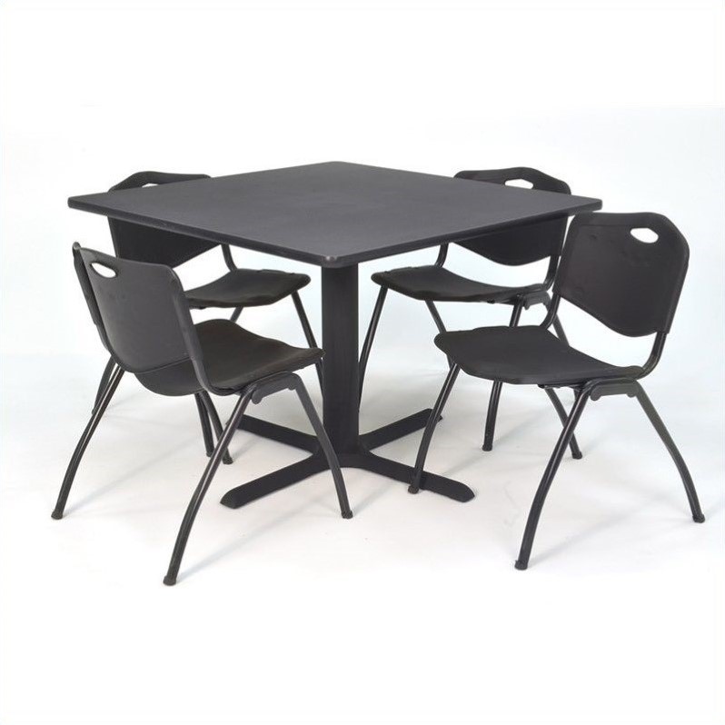 | Regency Square Table with 4 M Stack Chairs in Grey and Black |