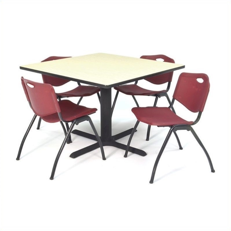 | Regency Square Table with 4 M Stack Chairs in Maple and Burgundy |