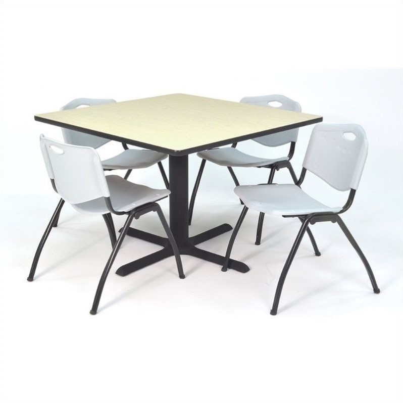 | Regency Square Table with 4 M Stack Chairs in Maple and Grey |