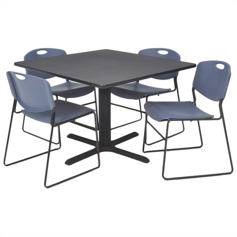 | Regency Square Table with 4 Zeng Stack Chairs in Grey and Blue-42 inch |