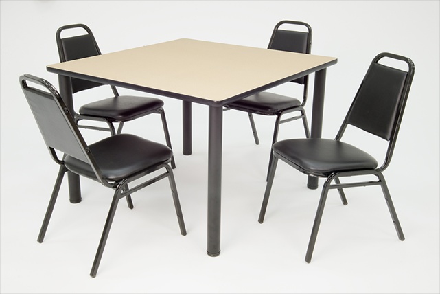 | Regency TB3030BEBPBK29 30 In. Square Beige Table & Black Post Legs With 4 Stack Chairs |