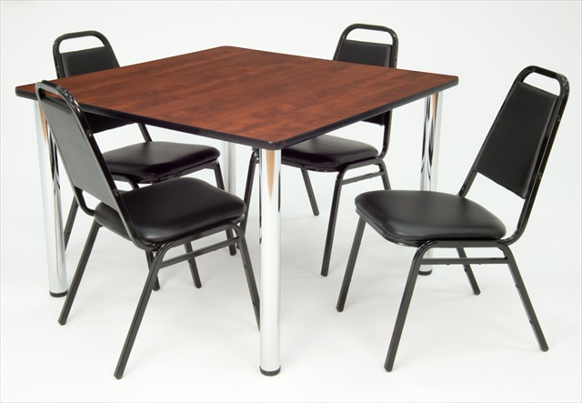 | Regency TB3030CHBPCM29 30 In. Square Cherry Table & Chrome Post Legs With 4 Stack Chairs |
