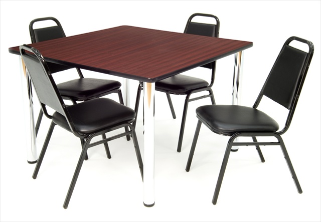 | Regency TB3030MHBPCM29 30 In. Square Mahogany Table & Chrome Post Legs With 4 Stack Chairs |