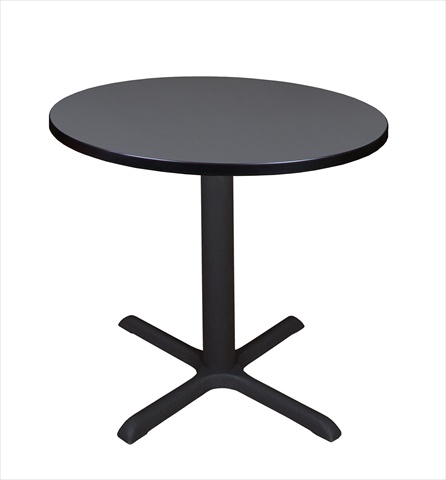 The 30 in. Round Table Top is constructed of thermal fused melamine that protects against stains burns bumps and bruises. A black PVC edge adds extra protection. The Cain X-Base is constructed of a black tubular steel post and solid steel legs with a textured powder coat finish. The table feet feature hidden adjustable glides that make this table ideal for training rooms lunch rooms restaurants cafes or small conference rooms. Features
