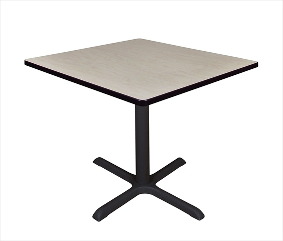 The 36 in. Square Table Top is constructed of thermal fused melamine that protects against stains burns bumps and bruises. A black PVC edge adds extra protection. The Cain X-Base is constructed of a black tubular steel post and solid steel legs with a textured powder coat finish. The table feet feature hidden adjustable glides that make this table ideal for training rooms lunch rooms restaurants cafes or small conference rooms. Features