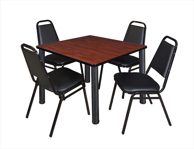 | Regency TB4242CHBPBK29 42 In. Square Cherry Table & Black Post Legs With 4 Stack Chairs |
