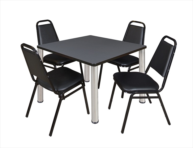 | Regency TB4242GYBPCM29 42 In. Square Grey Table & Chrome Post Legs With 4 Stack Chairs |
