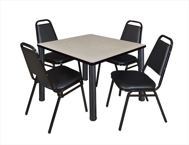 | Regency TB4242PLBPBK29 42 In. Square Maple Table & Black Post Legs With 4 Stack Chairs |