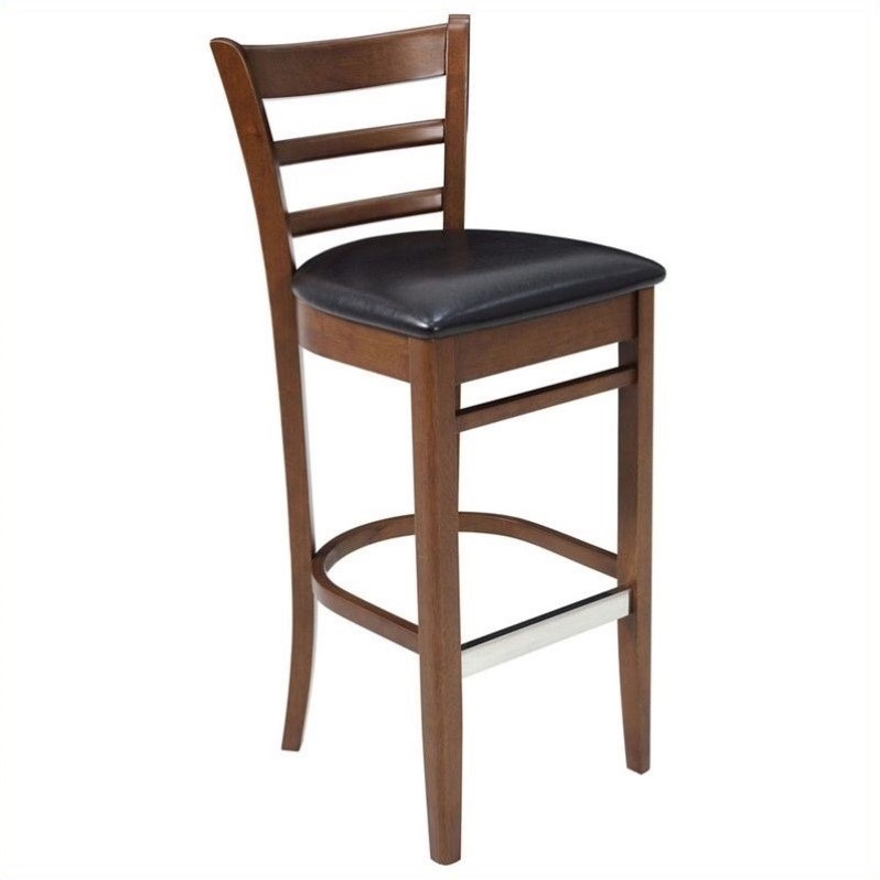 | Regency - Bar Stools - 8095CHBK - The Zoe cafe 42'' high stool features solid hardwood construction and offers a black vinyl seat cushion that repels stains and liquids. The wood is stained and lacquered with a heavy duty polyurethane finish. This chair also features a metal cross brace on the front that offers foot support while adding stability.Finish: cherry and blackChrome foot restRepels stains and liquidsSpecifications:Overall Dimensions: 42 H x 18 W x 21 D